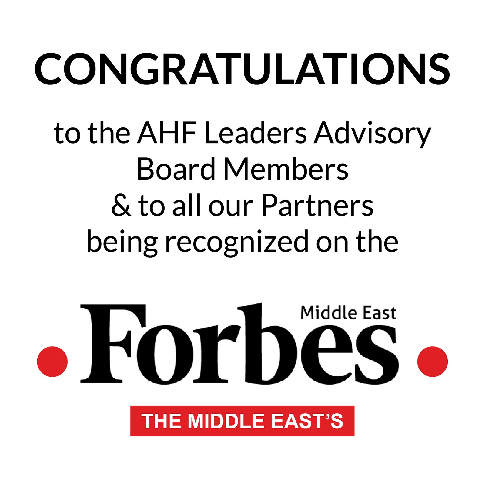 Celebrating Arab Healthcare Leadership & Visionary Partners Transforming Arab Healthcare. We extend our heartfelt congratulations to our esteemed partners and our distinguished Leaders members who have been listed among the Top 100 Healthcare Leaders for 2025 by Forbes Middle East.